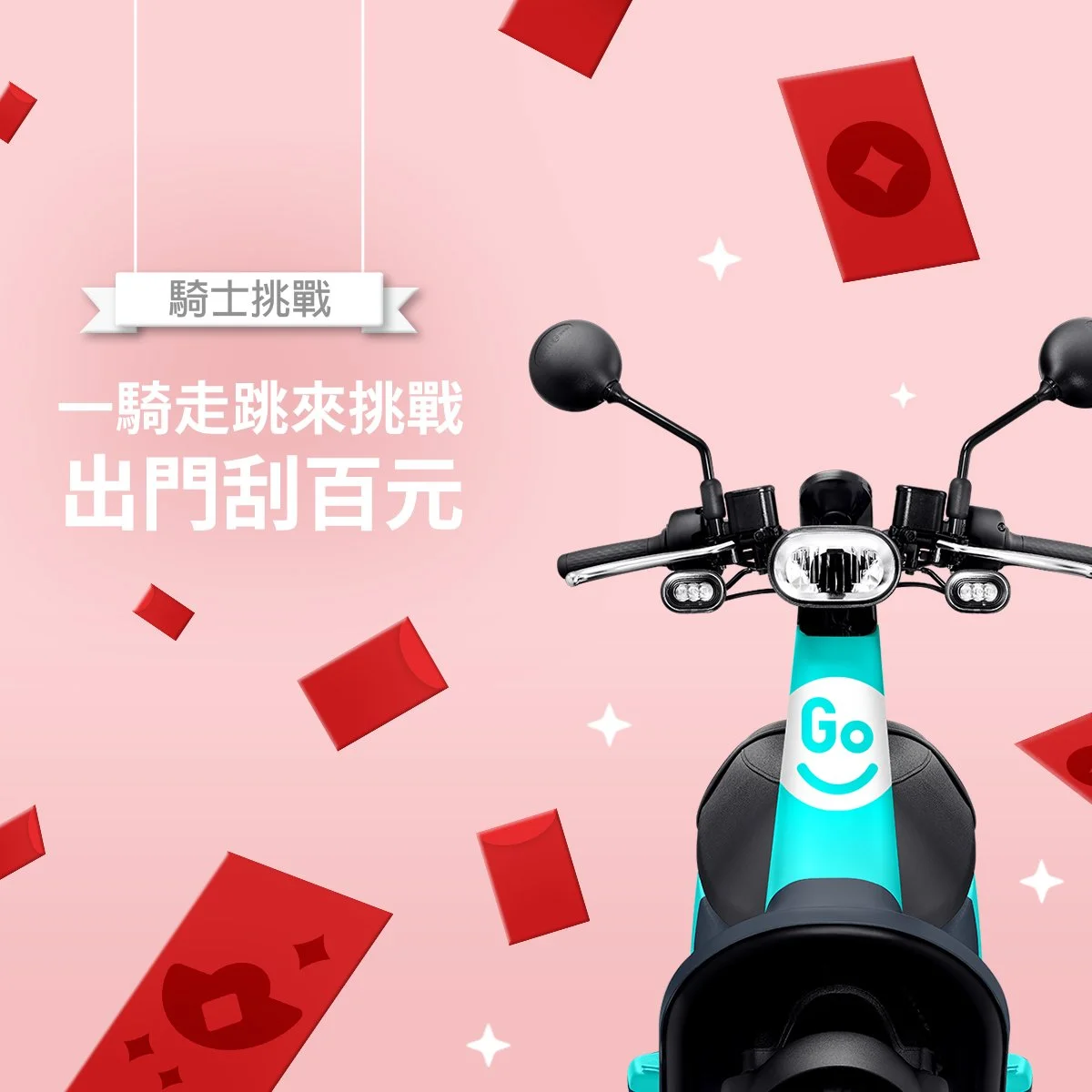 活動期間,用戶於 GoShare App 承接「一騎走跳來換電 🧨!」挑戰,並在期限前完成有效換電 1 次即可獲得 $15 元騎乘金 5 張。