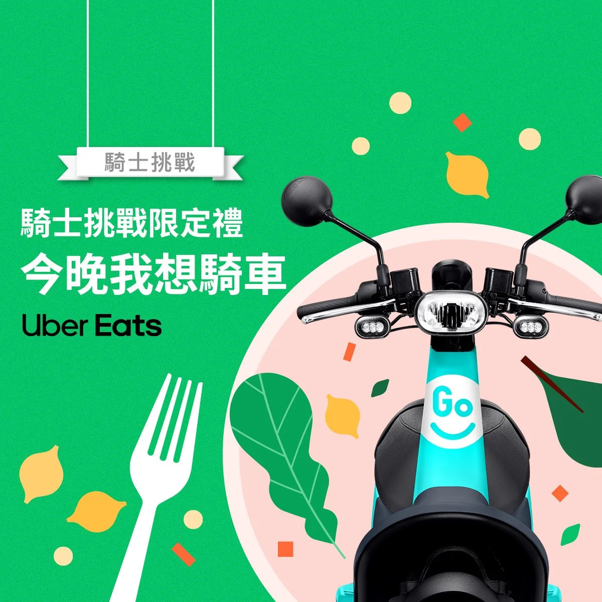 於活動期間內,完成「今晚我想騎車」騎士挑戰,即可獲得 Uber Eats $200 元優惠序號。每組 GoShare 帳號限領一次。